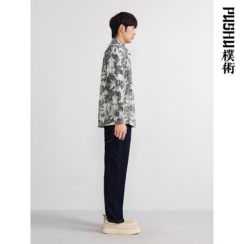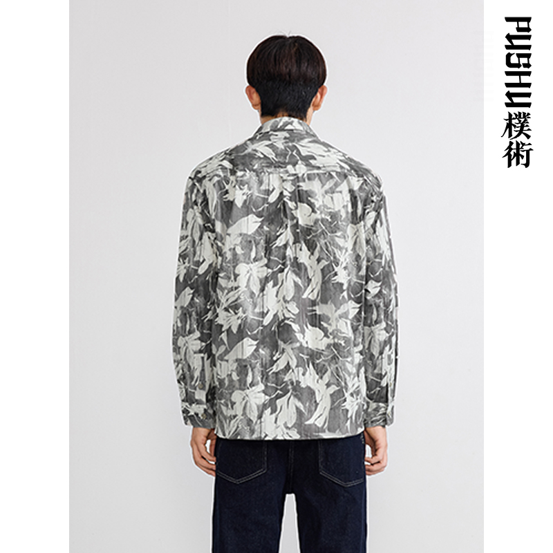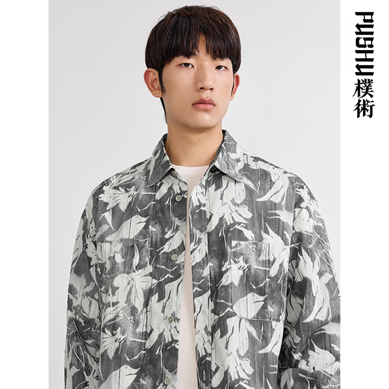 衬衫 朴术男装 全棉柔软国潮涂鸦印花艺术设计感素雅长袖 新款 春秋季