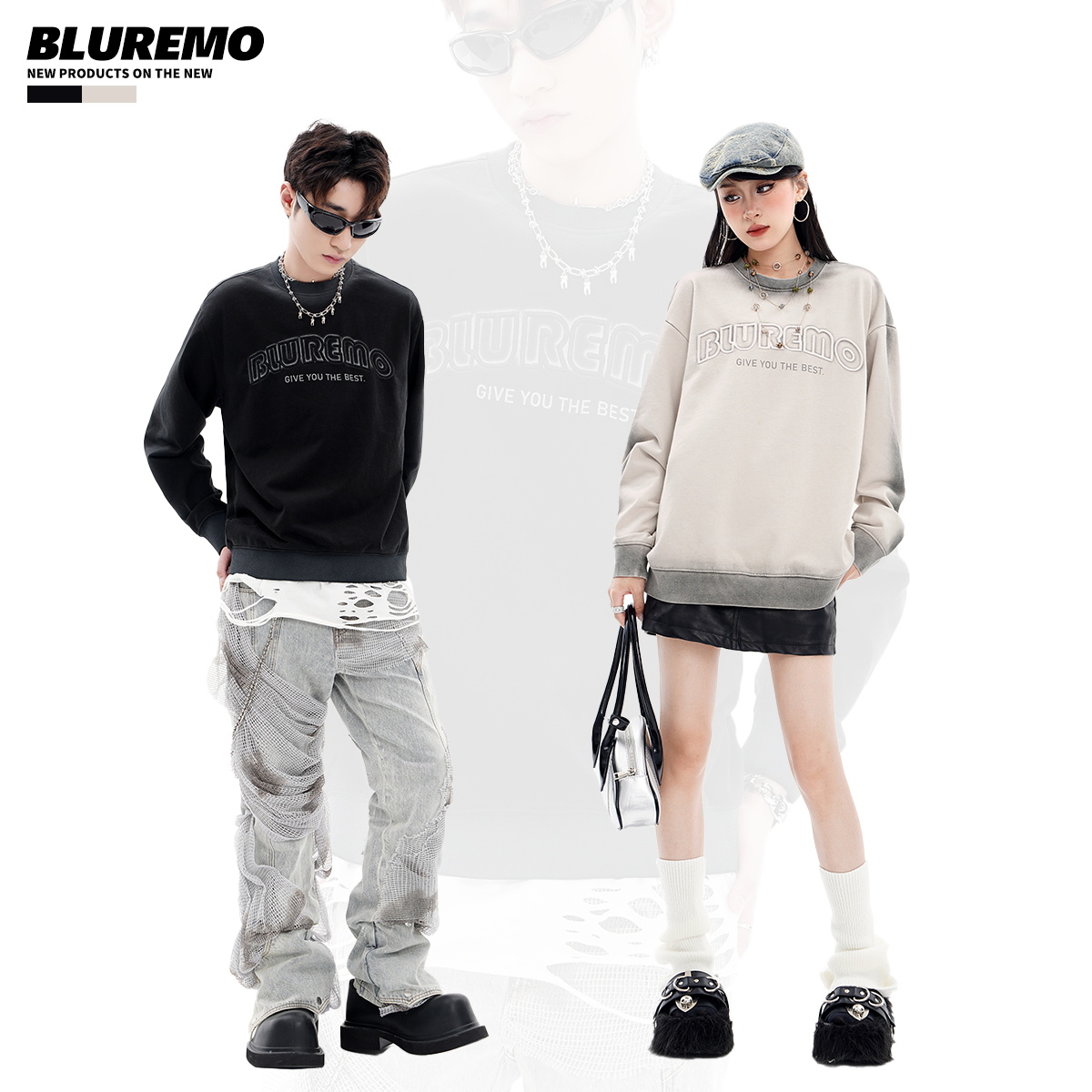 潮牌复古拼色渐变套头上衣女 新款 BJHG不计后果美式 圆领卫衣男秋季