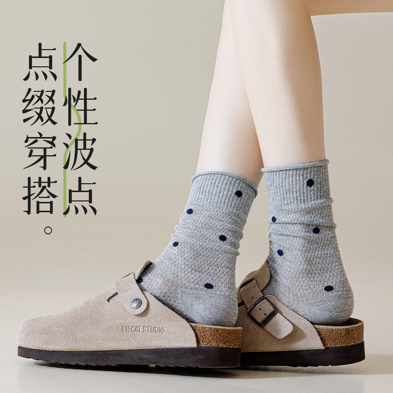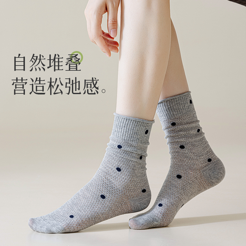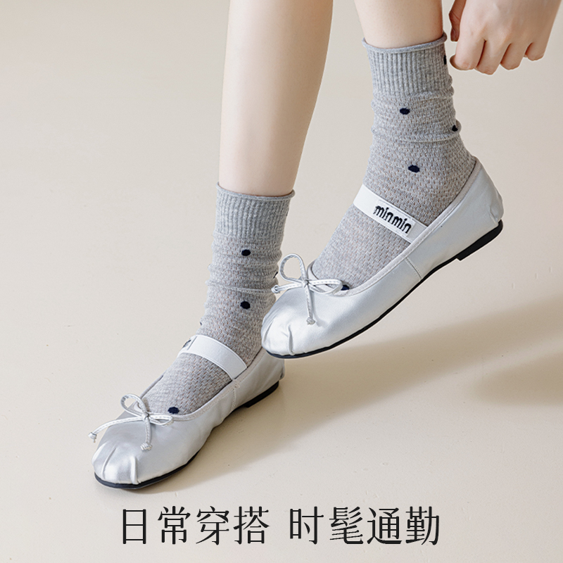 爆款 纯棉中筒袜2025年新款 miu系春秋 薄款 灰色波点堆堆袜子女夏季