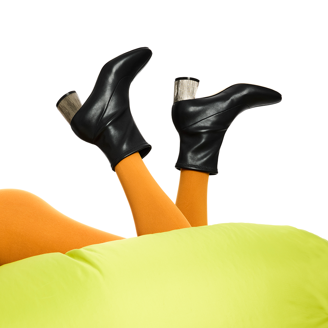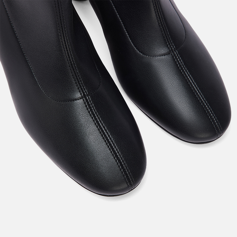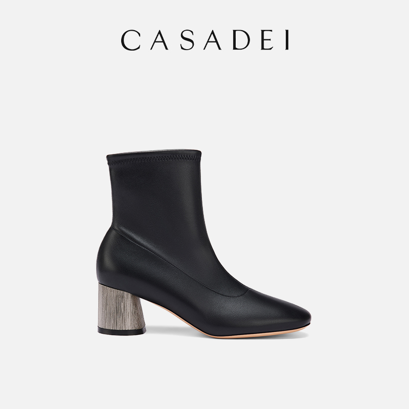 瘦瘦靴 纹理粗跟 CASADEI 卡桑蒂Cleo黑色弹性气质小牛皮高跟短靴