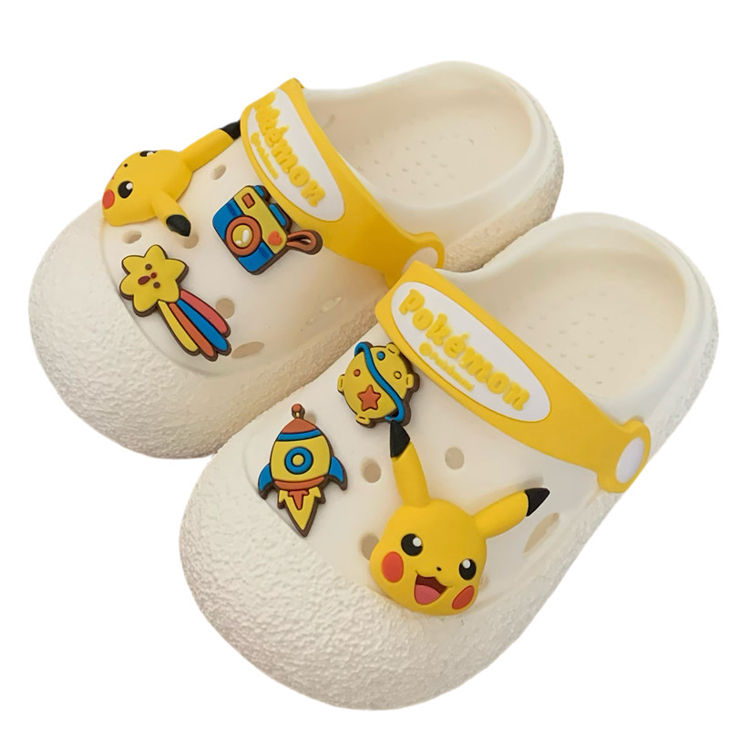 沙滩洞洞鞋 皮卡丘拼色男童女童夏季 宝可梦可爱儿童凉拖鞋 细细条