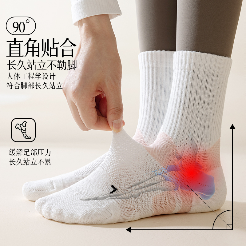 长袜 白色搭配拖鞋 无骨袜子女春秋款 中筒袜纯棉防臭堆堆月子袜夏季