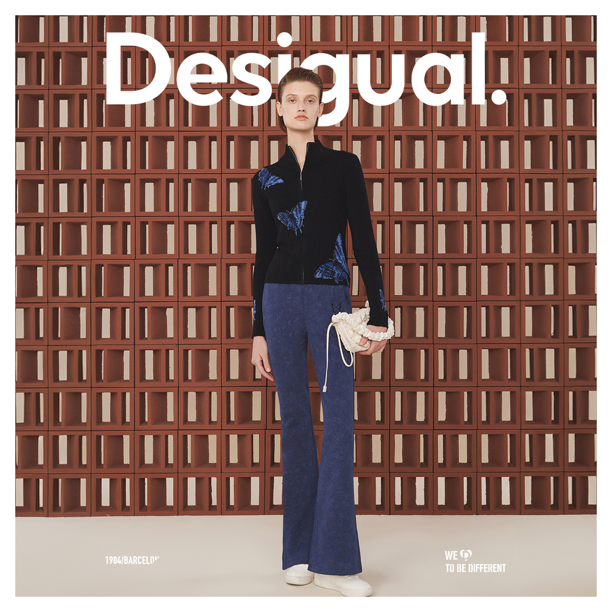 Desigual弹力水洗蝴蝶刺绣女士休闲裤 长裤