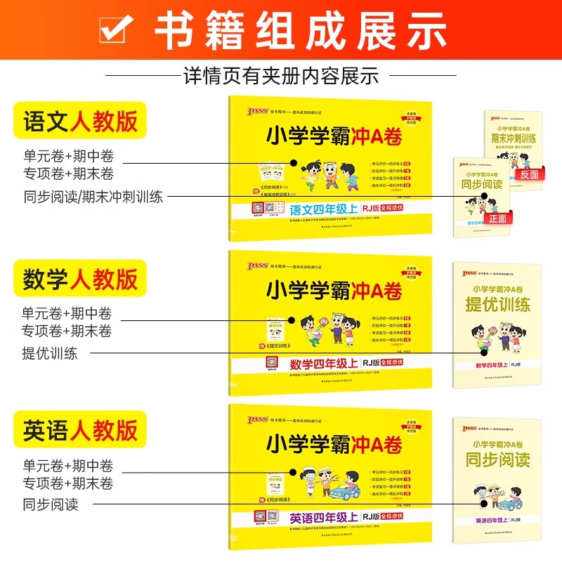 2024秋小学学霸冲A卷一年级二年级三四五六年级上册语文数学英语人教版 提优同步训练PASS绿卡 全套北师大期末冲刺试卷测试卷冲a单元