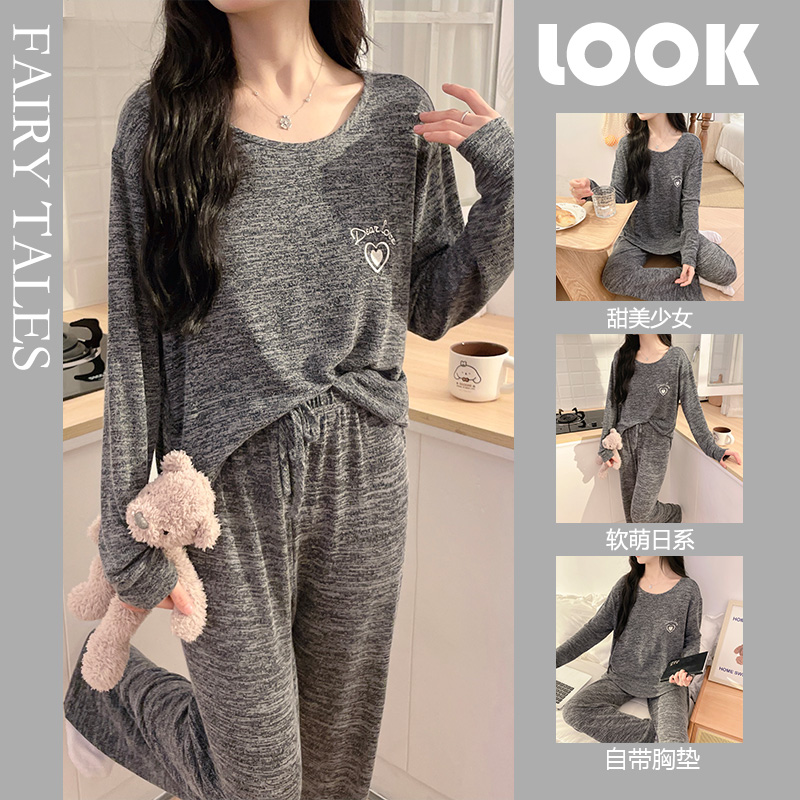 2025新款 长袖 春秋冬季 带胸垫学生套装 棉质网红家居服 睡衣女夏薄款