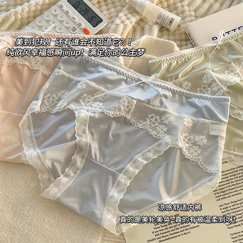 大码 无痕透气亲肤薄真丝莫代尔三角裤 女 蕉内银皮500E女士内裤 3件