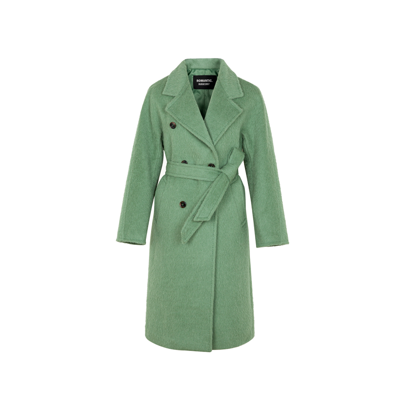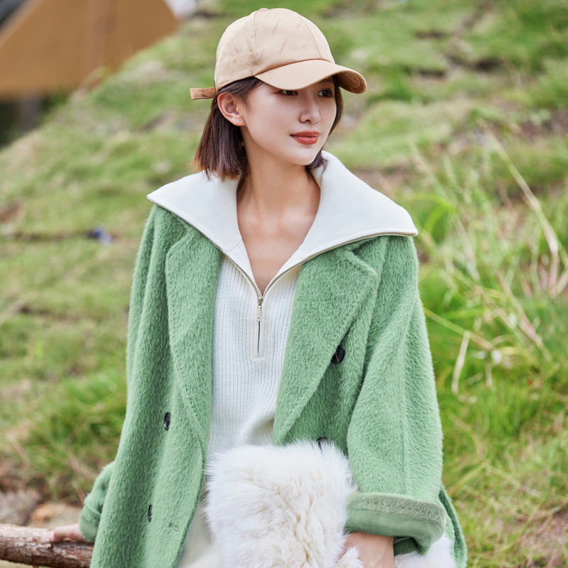 长袖 绿色长款 羊毛大衣女 新款 XG雪歌淑女风羊驼毛毛呢外套2024冬季