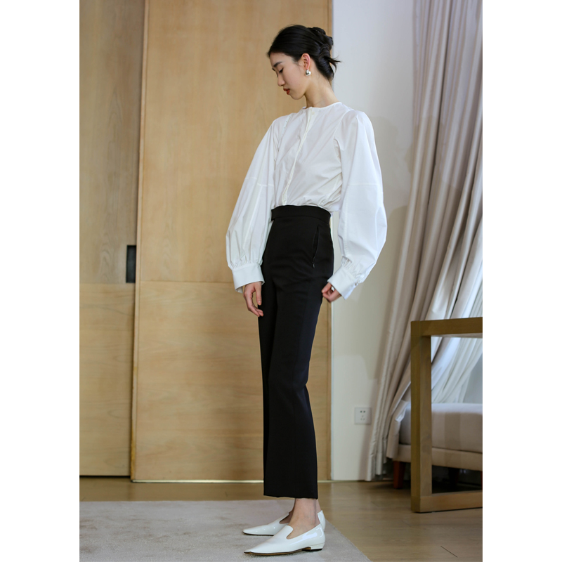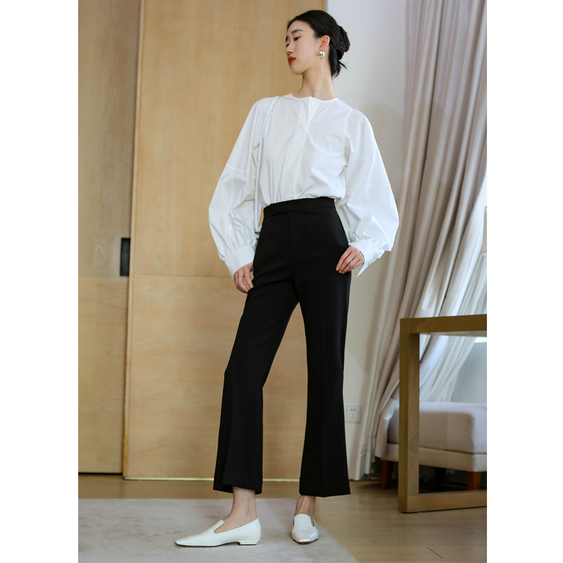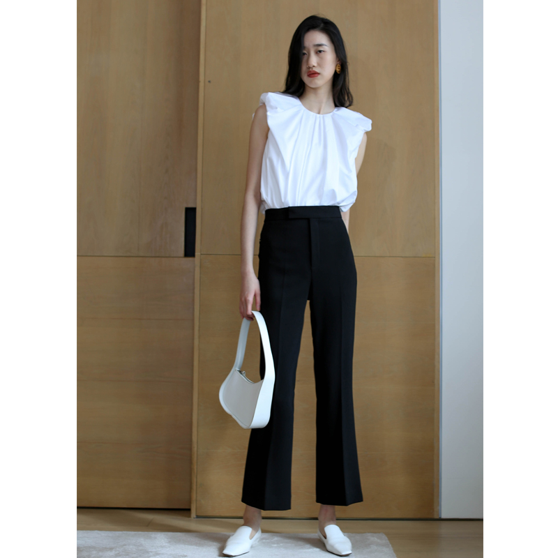 无有无印黑色显瘦高腰微弹百搭九分微喇休闲裤 24195