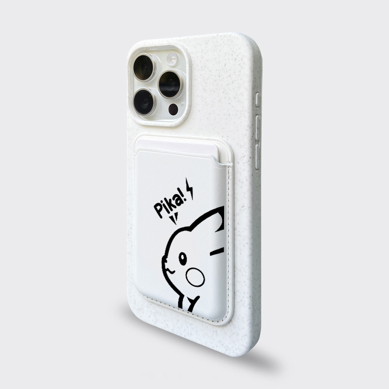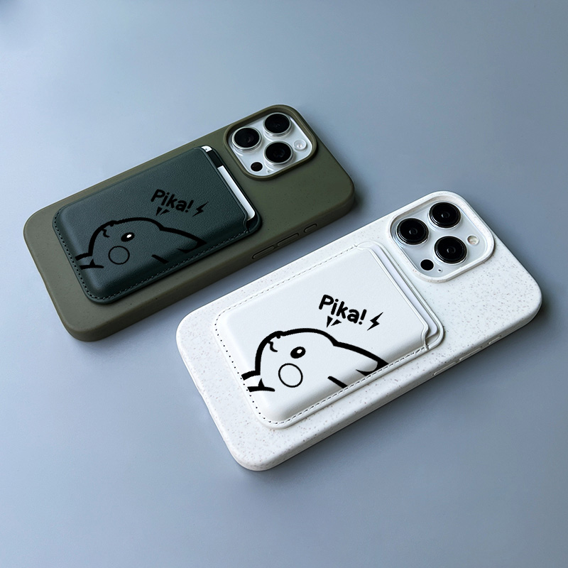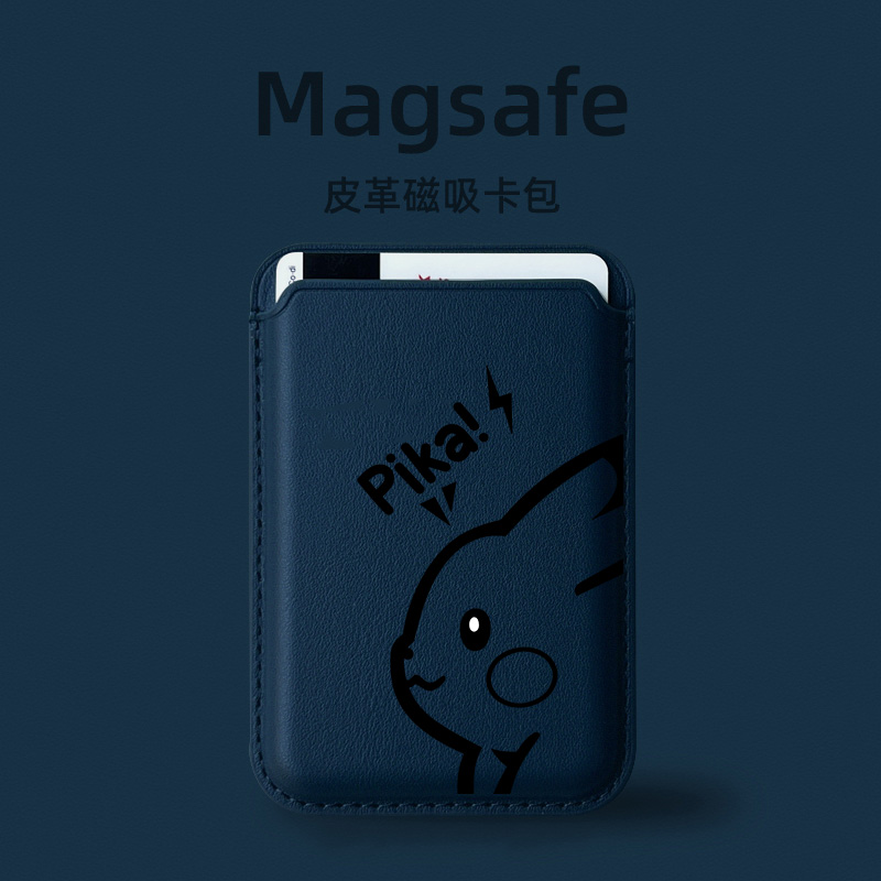 mini皮质配件门禁 15pro卡套式 线条皮卡丘magsafe磁吸卡包适用于苹果2024新款 iphone13promax手机壳14plus同款