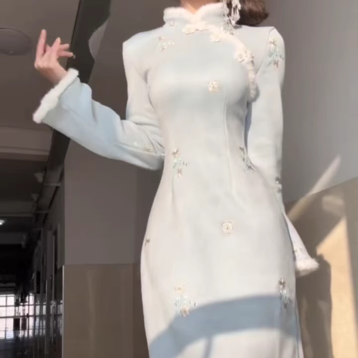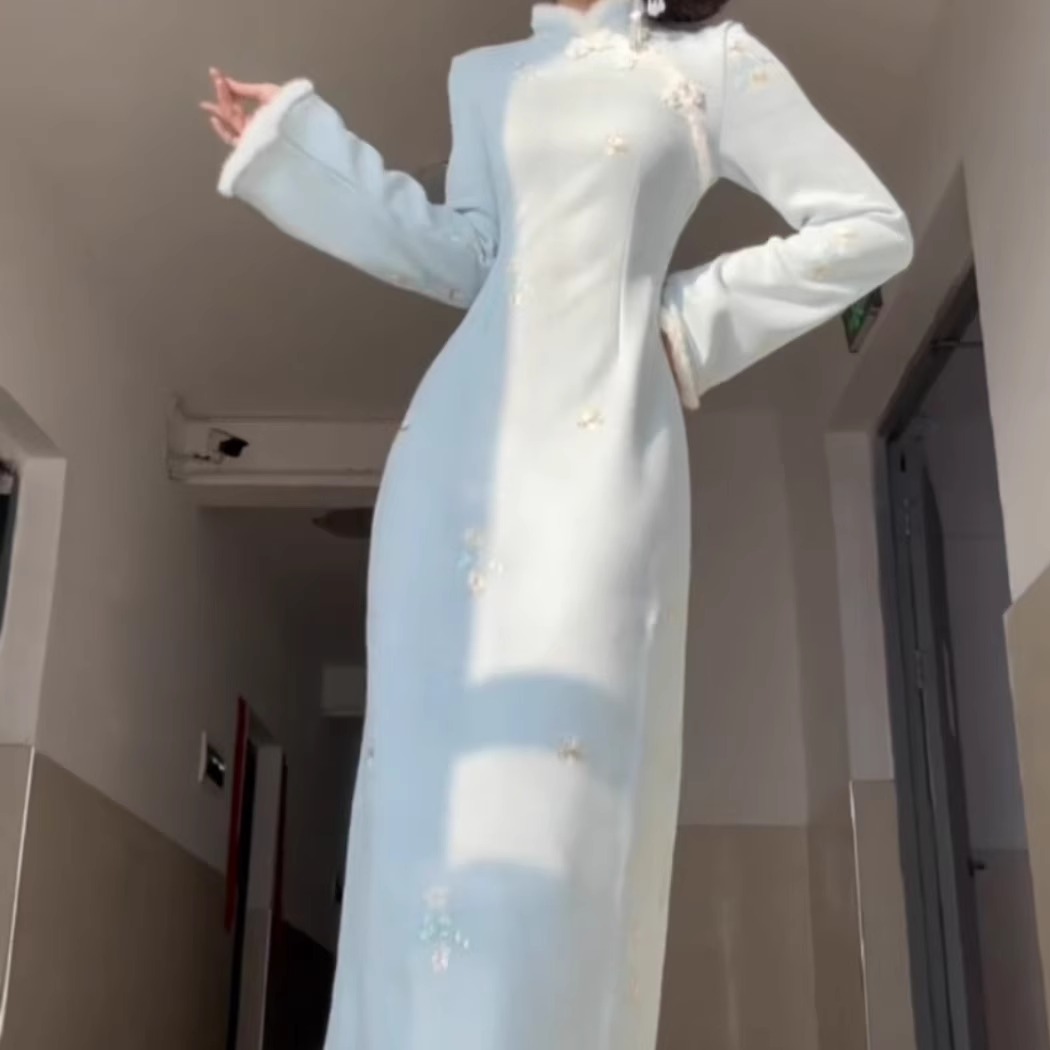 长款 短日常可穿秋冬季 旗袍2025新款 女复古修身 年轻款 白色国风中式