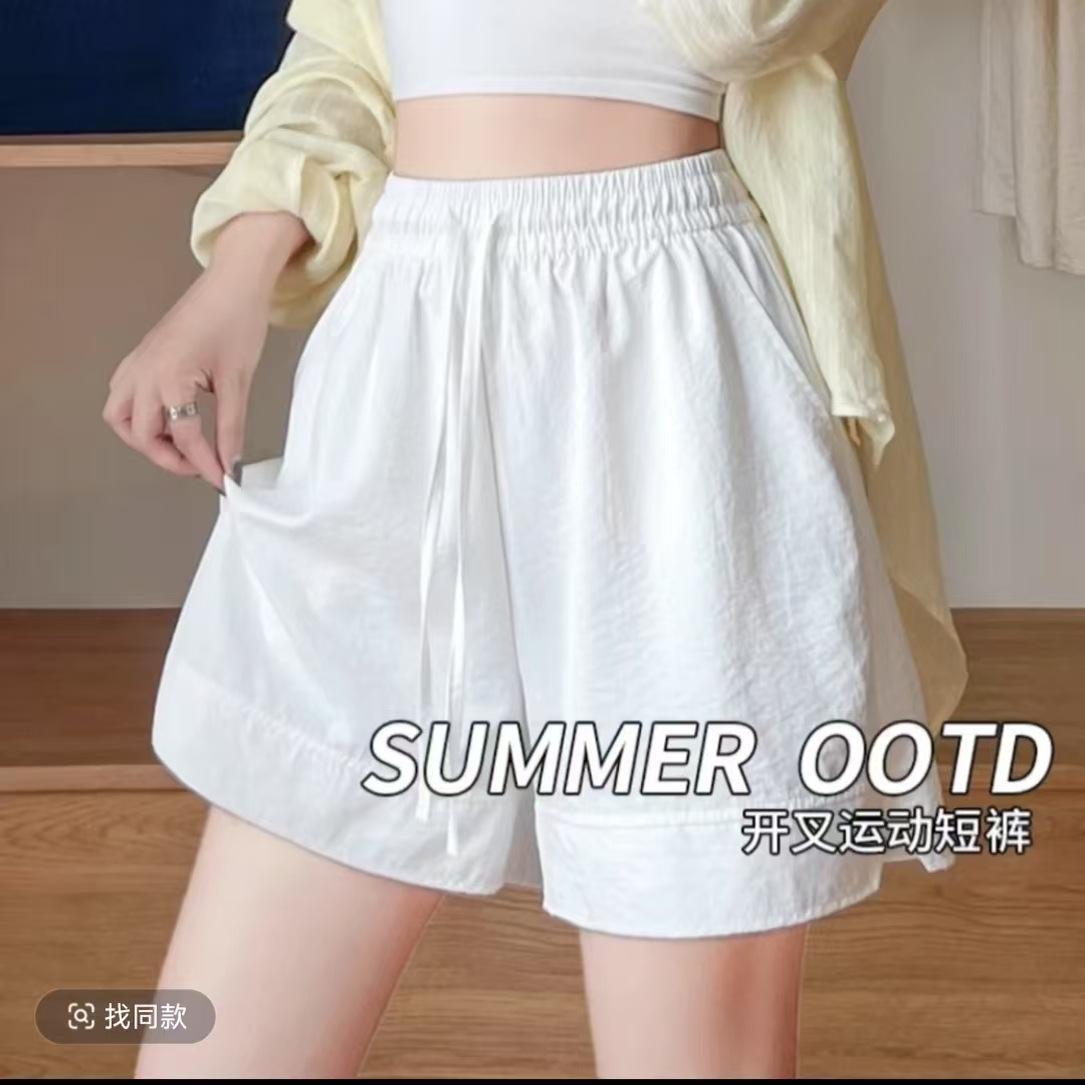 开叉高腰显瘦休闲阔腿休闲五分裤 新款 子 夏季 白色冰丝速干运动短裤