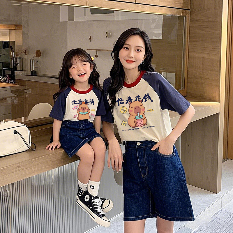 纯棉短袖 新款 T恤洋气炸街薄款 全家装 上衣 亲子装 半袖 一家三口夏季