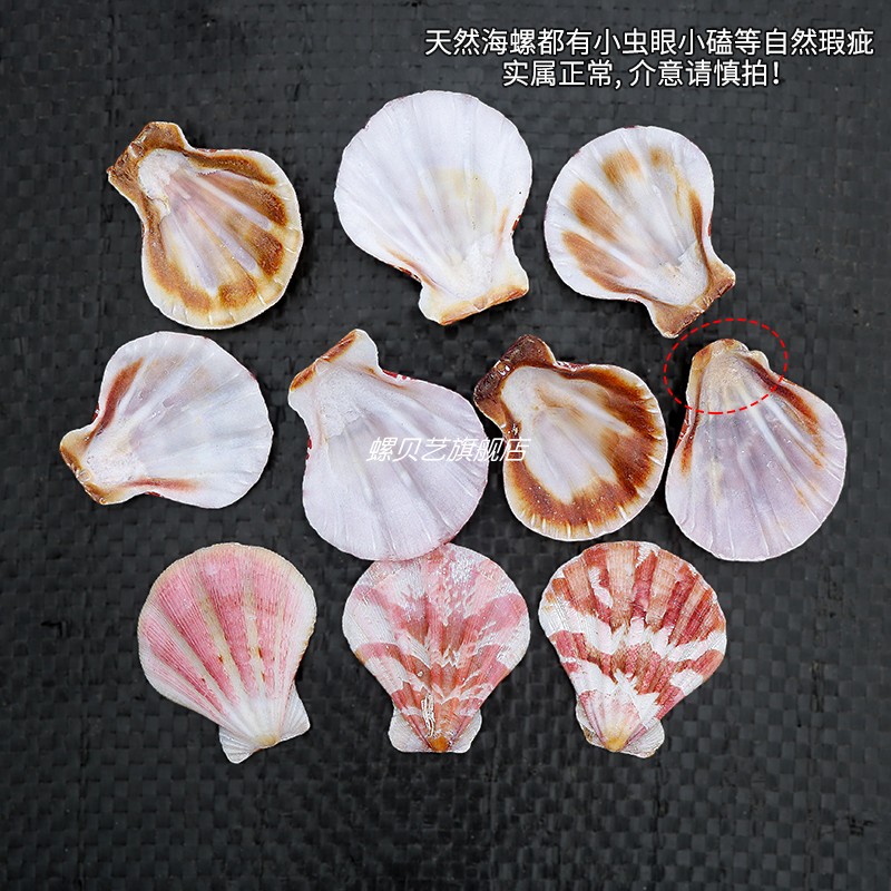 褶纹肋扇贝2 手工制作diy材料天然海螺贝壳收藏 4厘米厚扇贝10片装