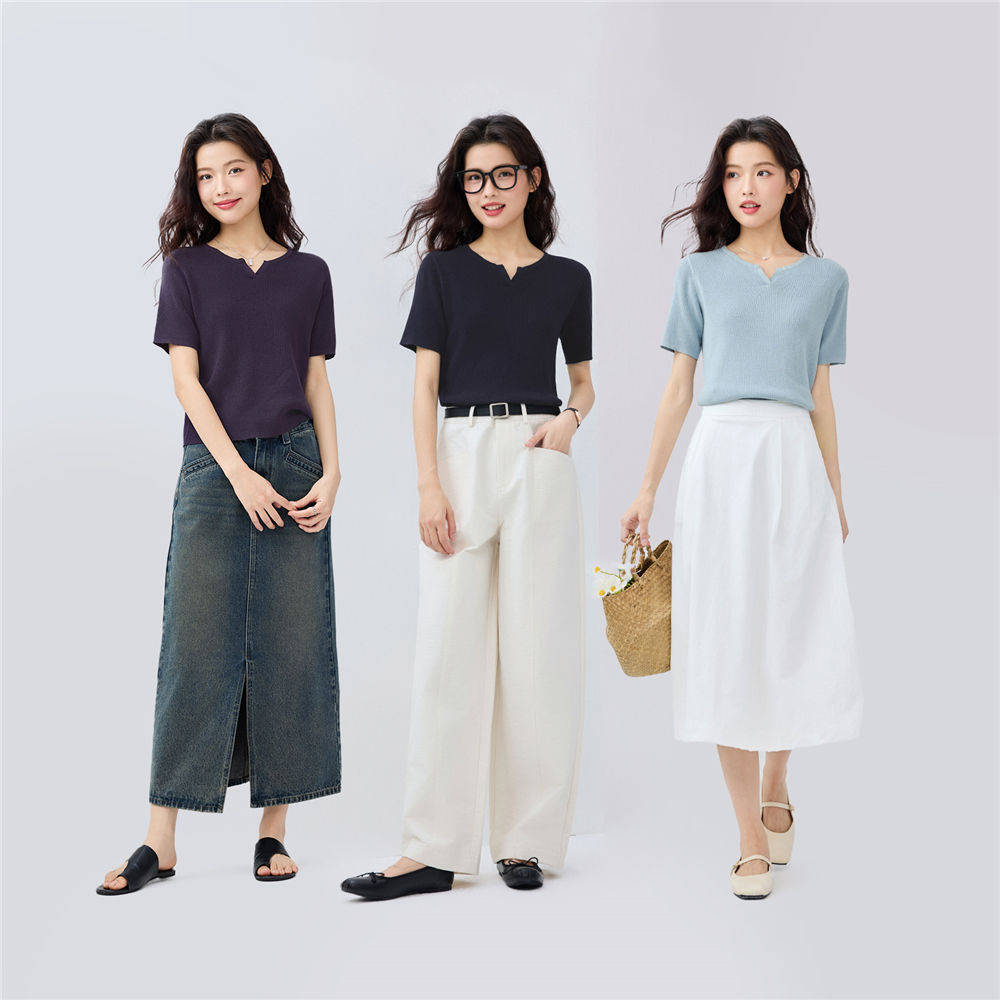 针织衫 条纹短袖 长袖 开衫 毛衣外套 RARN2025秋装 两件套圆领修身 新款