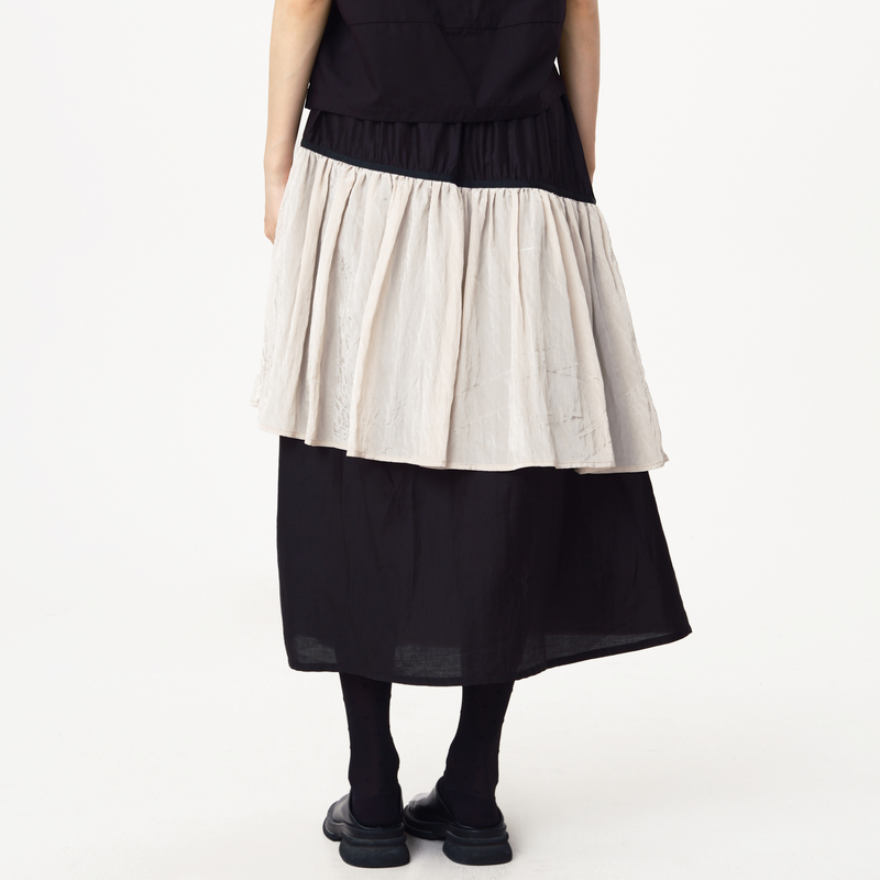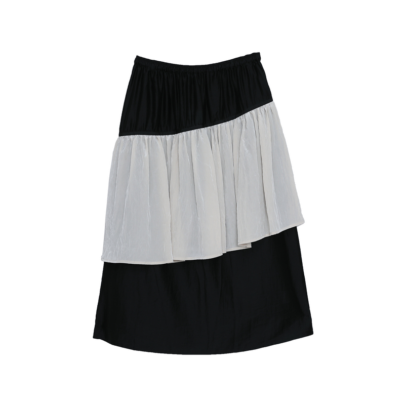 SNIDEL2025秋冬新品 气质纯色高腰缎面荷叶边蛋糕半身裙SWFS254265