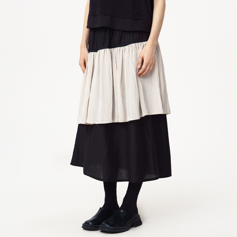 西町村屋格纹压褶不规则中裙女2025秋季 复古半身裙XAAB10392 新款