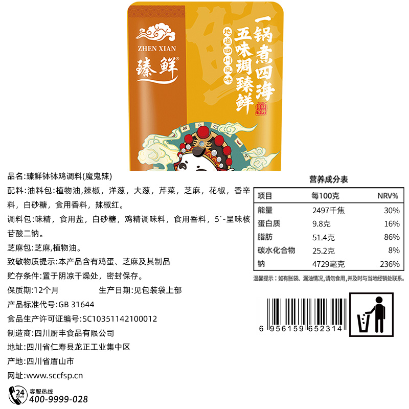 臻鲜钵钵鸡调料320g魔鬼辣商用配方冷串串火锅麻辣烫底料 包邮