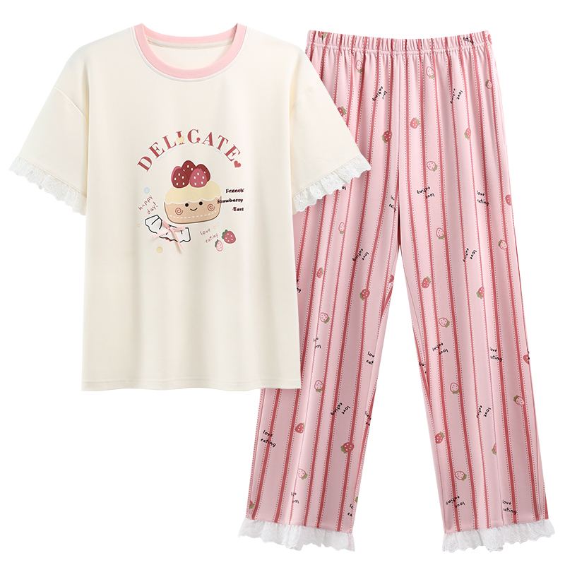 半边绒加绒加厚保暖珊瑚绒家居服草莓套装 家乐芬睡衣女秋冬款 冬季