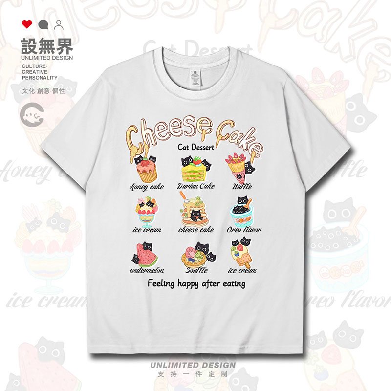 原创日系萌宠猫咪甜品九宫格慵懒铲屎官短袖 无界 T恤男女潮0017设