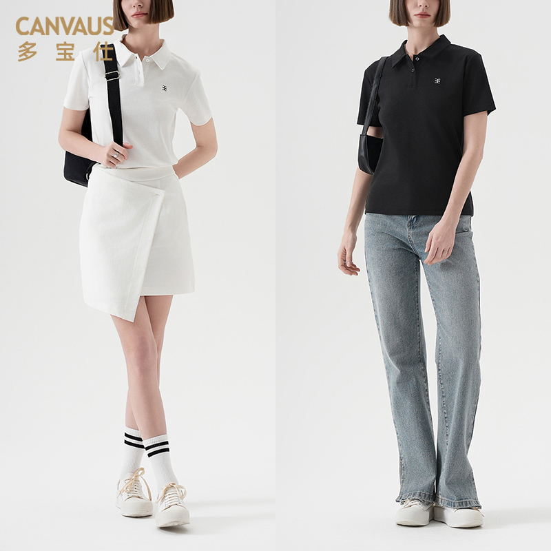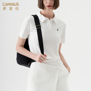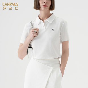 POLO领显瘦女士修身 t恤夏季 白色上衣 纯色绣花休闲短袖 多宝仕韩版