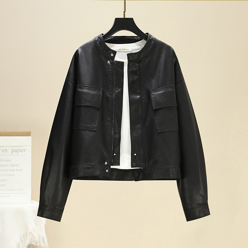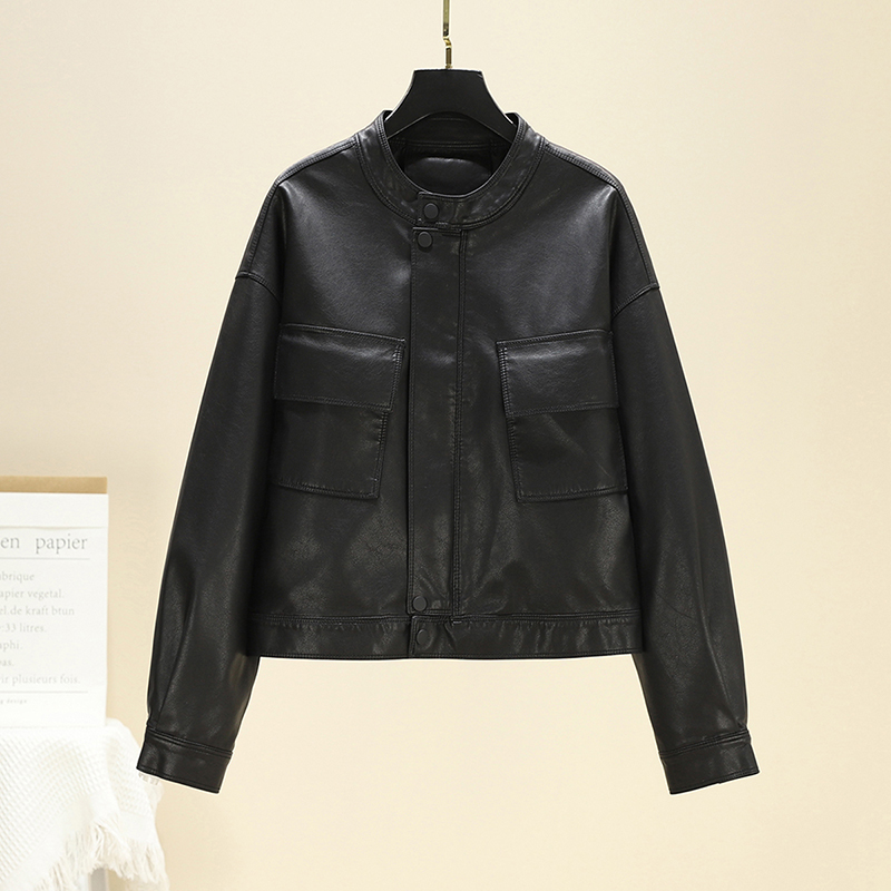 韩版 新款 皮衣外套女短款 装 显瘦立领机车水洗软皮夹克上衣 2025秋季