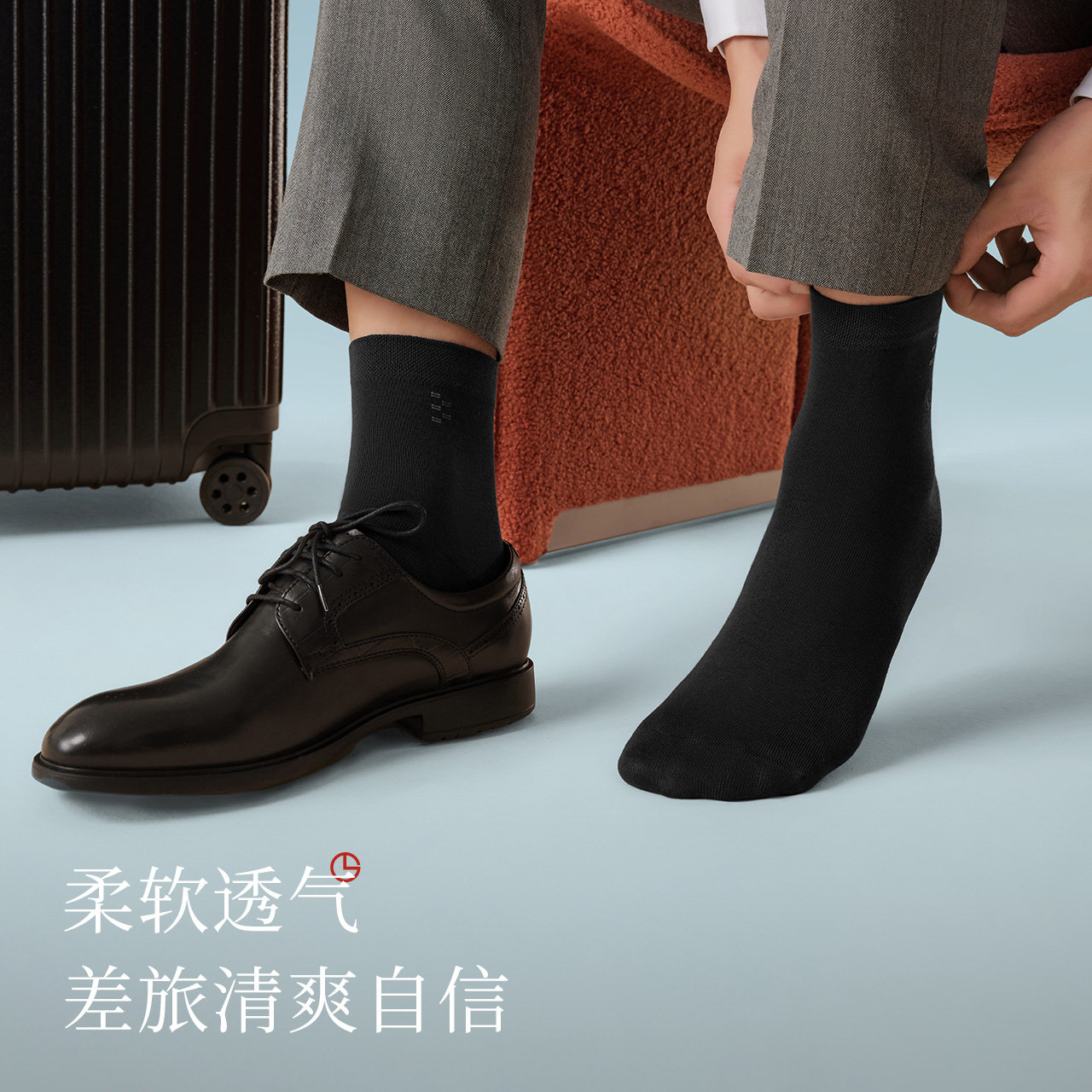 长袜黑色抗菌男袜 短袜春夏季 雅鹿袜子男士 中筒纯棉防臭吸汗薄款
