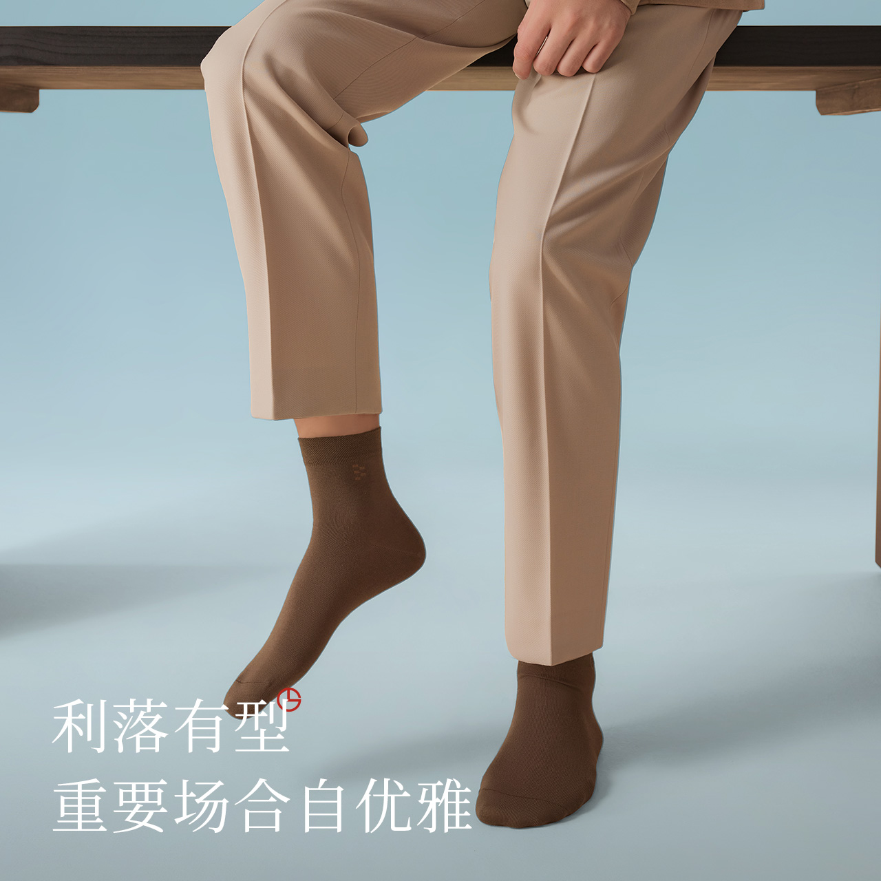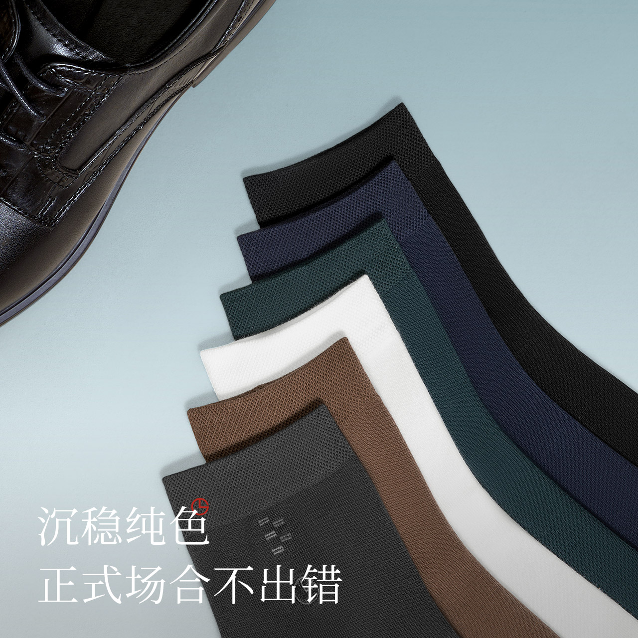 棉伙棉伴海藻袜舒适抗菌防臭男女商务运动纯色裸感中筒袜