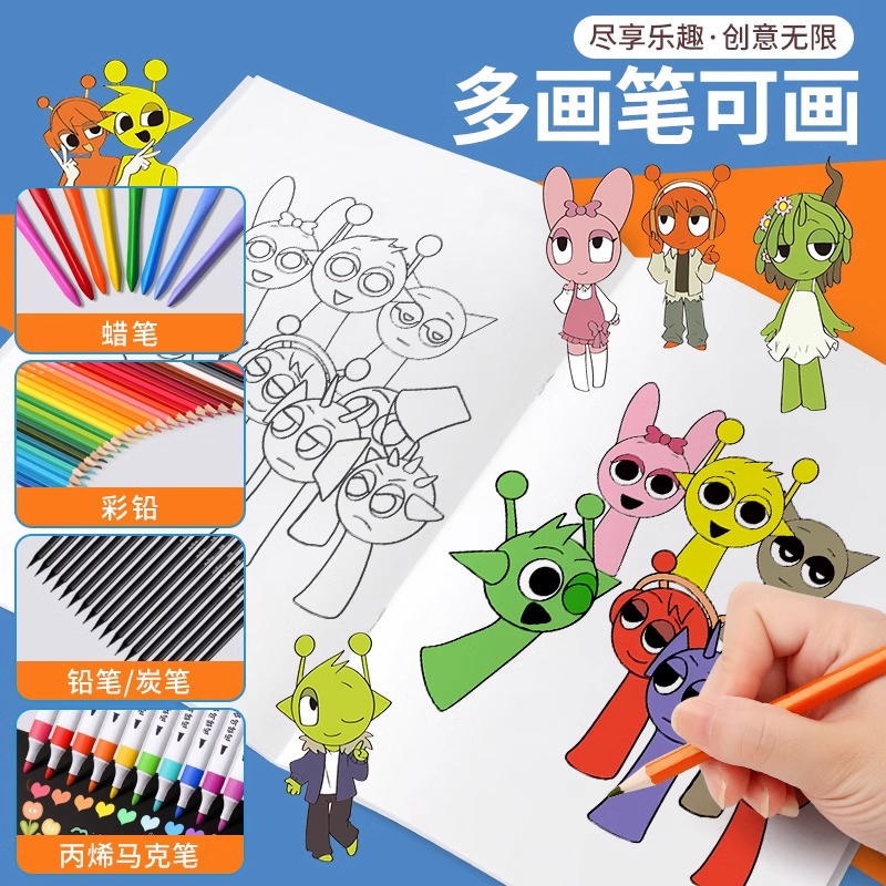画画本漫画描摹本儿童周边手绘幼儿园填色图画本孩子小学生专用素临摹涂色画册玩具描红本六一节礼物