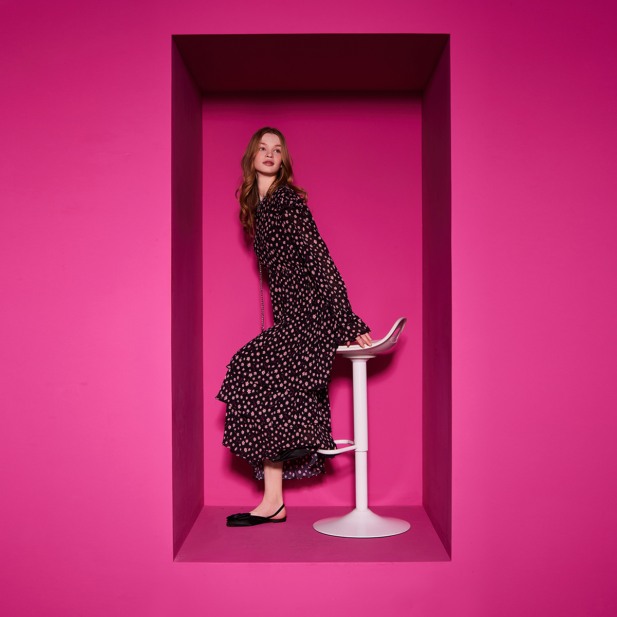 连衣裙裙子女 彩色印花气质碎花长袖 Juicy Couture橘滋春夏新款