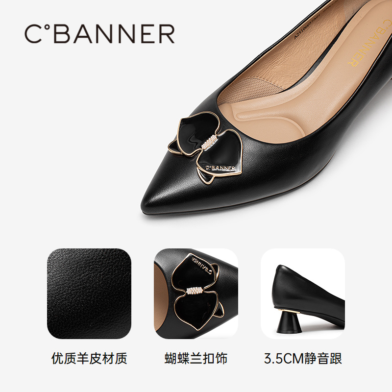 新款 康莉春季 高跟单鞋 女方头真皮通勤时尚 子 方扣浅口鞋 博主推荐