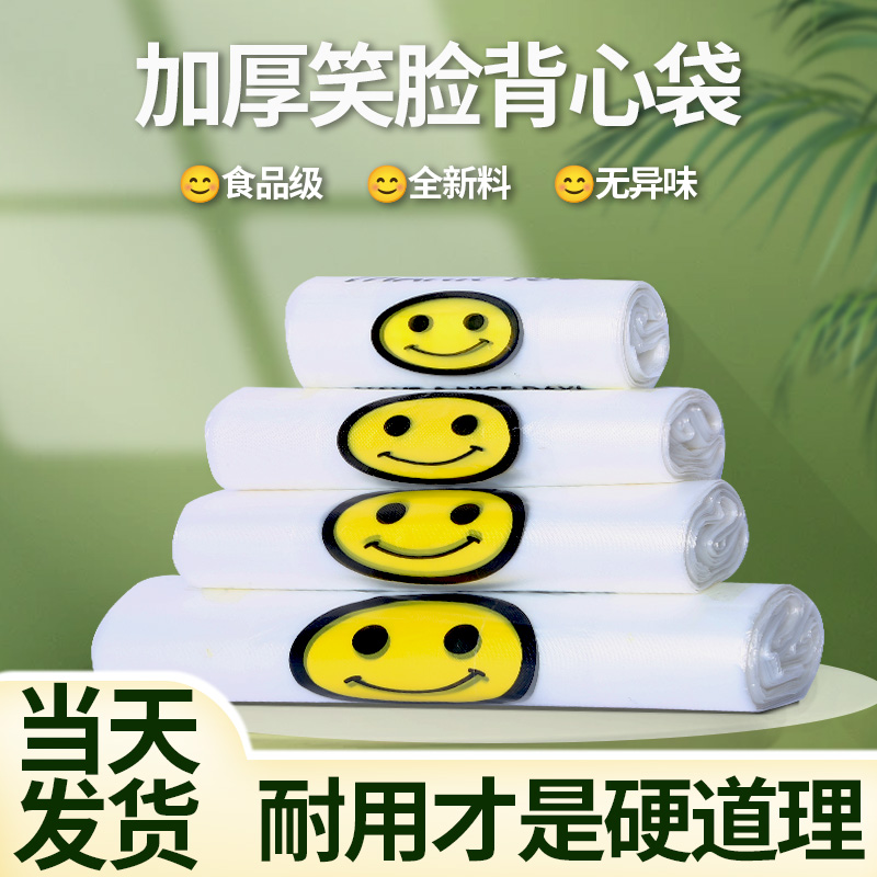 笑脸塑料袋加厚食品袋家用背心方便袋批发商用超市外卖打包购物袋