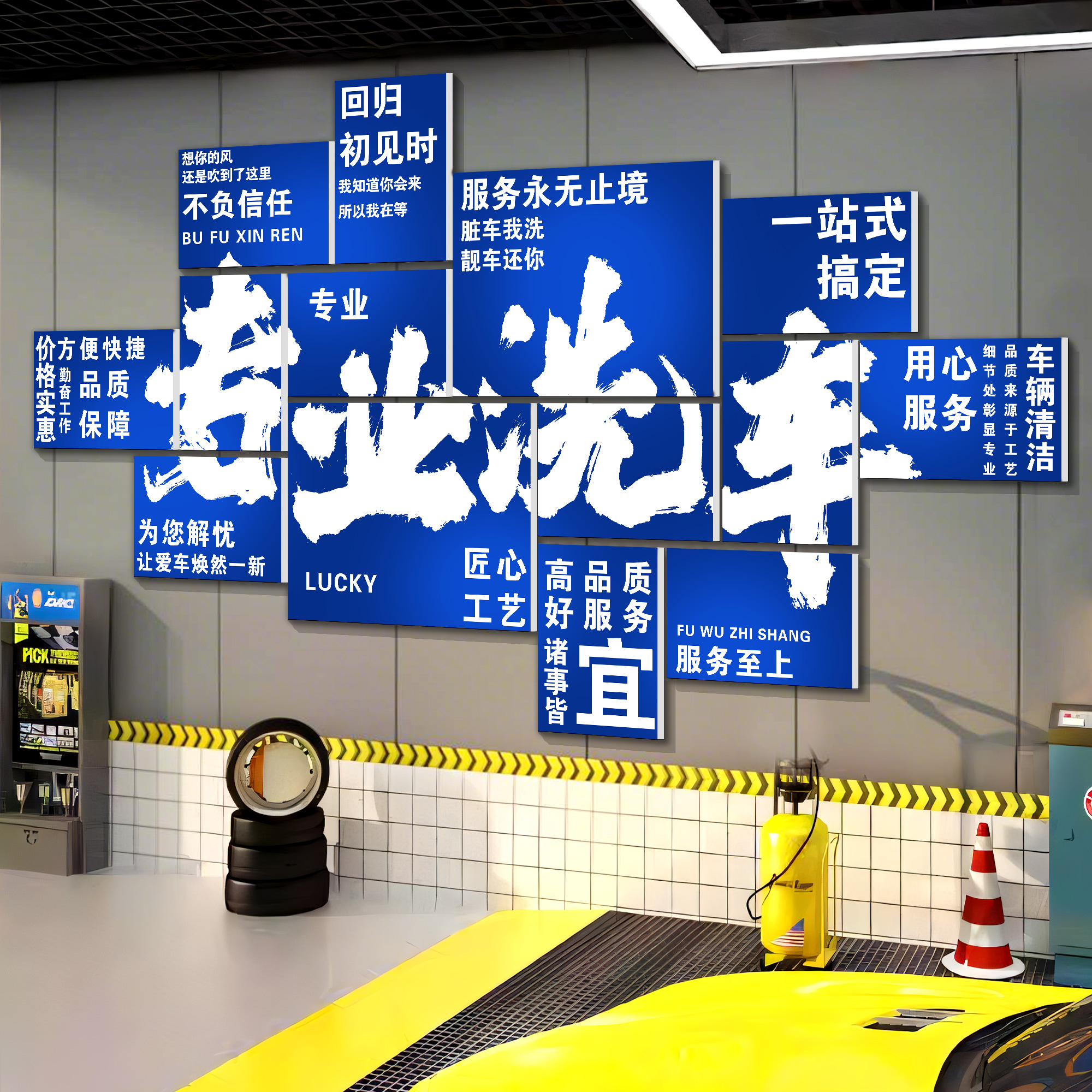 汽车美容店墙面装 贴膜广告背景形象墙贴纸挂画 饰修理厂洗车店改装