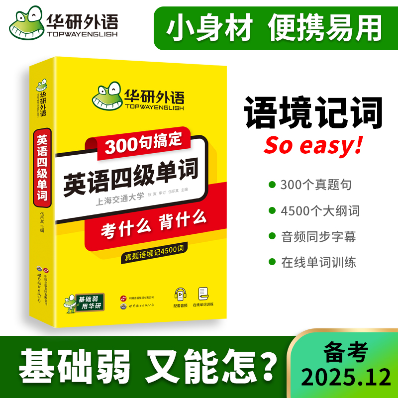 华研外语四级英语真题考试指南300句搞定四级单词全套备考2025年12月大学英语四级核心单词阅读理解听力翻译与作文学习资料书cet4