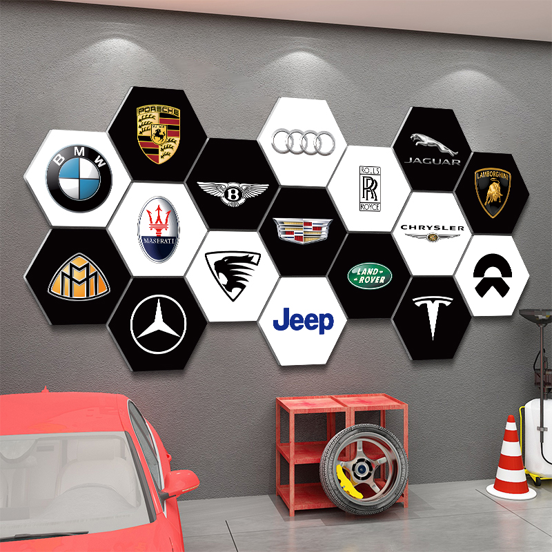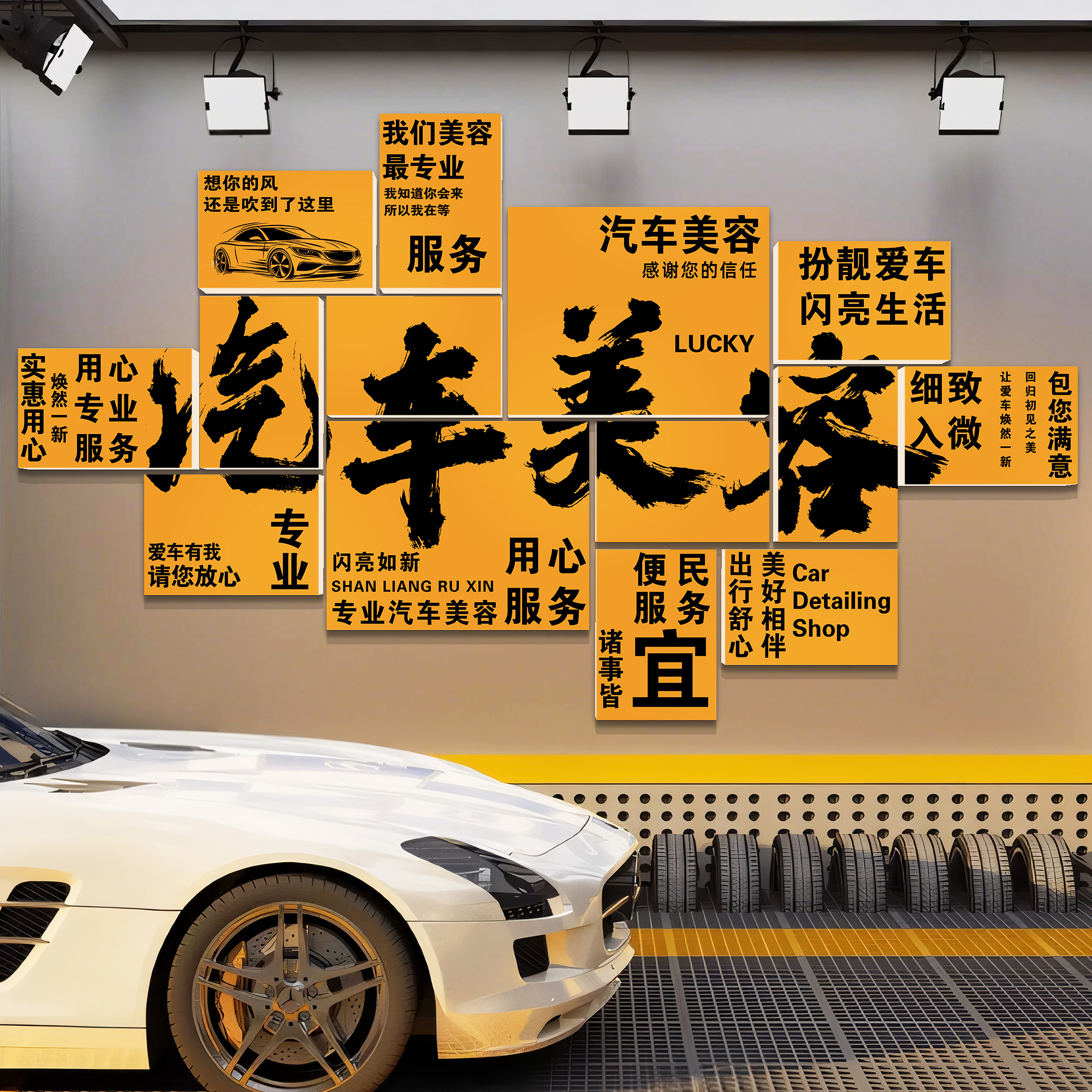 网红汽车4s美容店墙面装 饰广告贴膜纸维修理厂间洗防水形象背景壁
