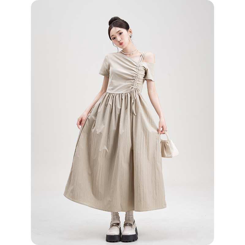 收腰连衣裙2024夏新款 法式 王楚然同款 女 朗姿三醋酸Basic衣橱