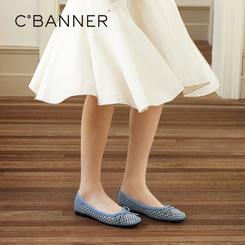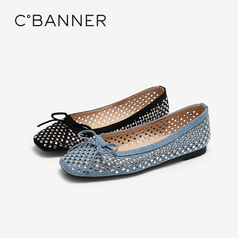 平底小香风通勤晚晚鞋 千百度镂空闪钻浅口单鞋 新款 2025秋季 女款