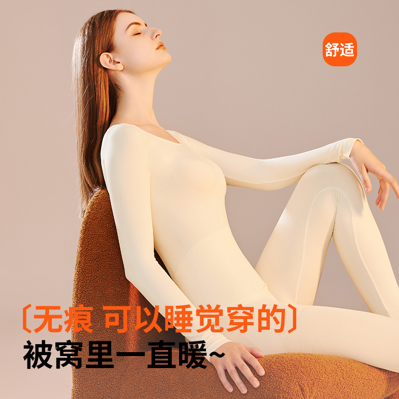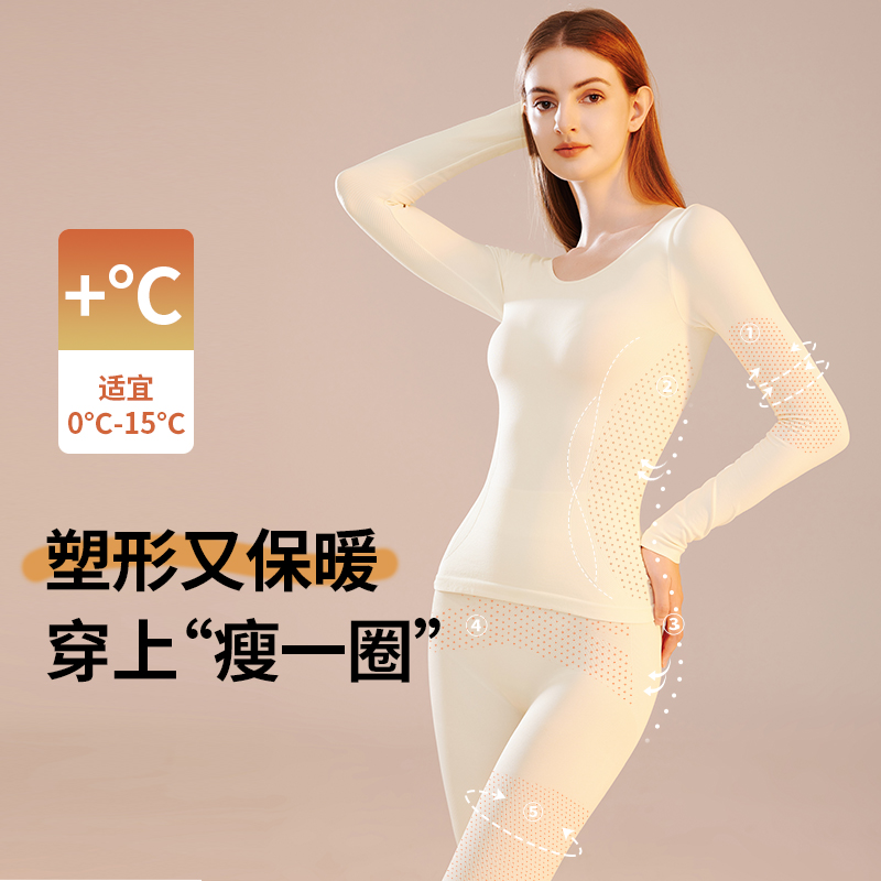 女士蓄热 秋冬美形衣打底修容秋衣秋裤 猫人保暖内衣女套装 塑形修身