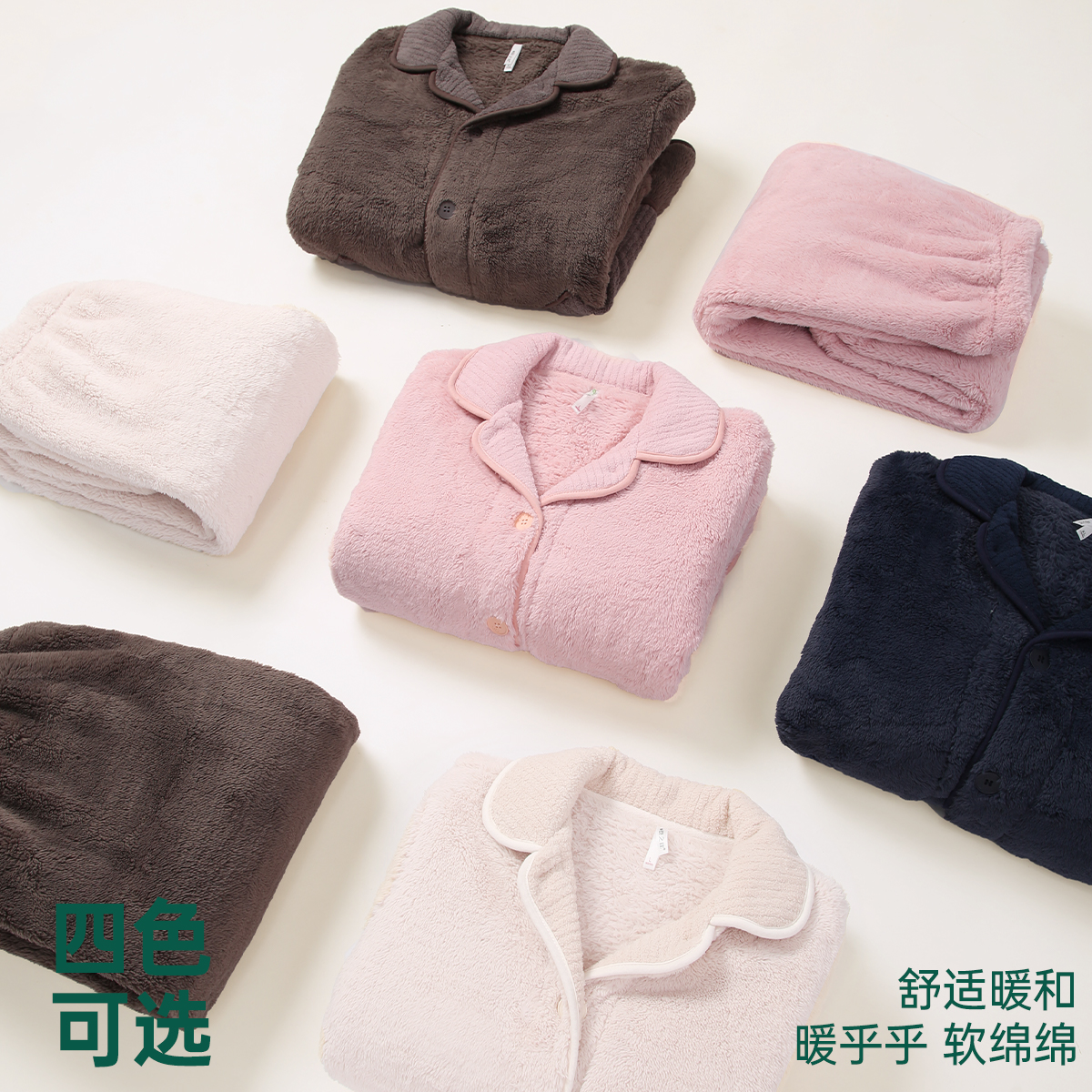 男士 家居服套装 中厚抗静电薄绒开衫 红豆暖暖绒海岛绒睡衣女秋冬款