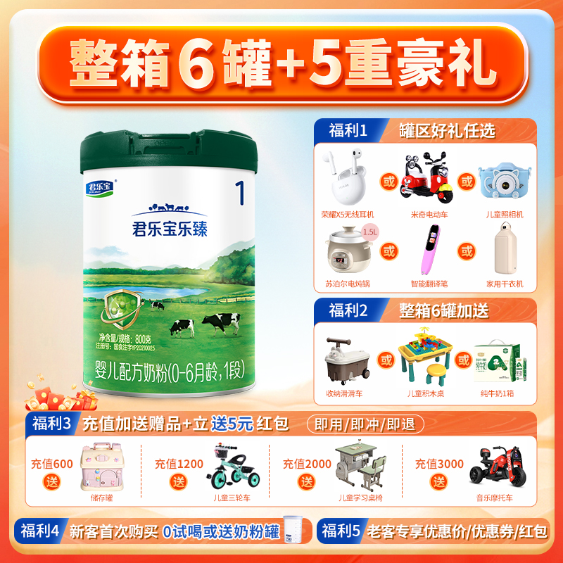 君乐宝乐臻1段婴幼儿含乳铁蛋白配方牛奶粉一段800g
