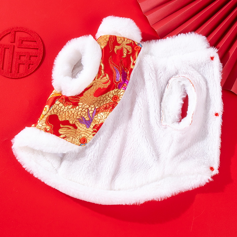 狗狗衣服秋冬喜庆龙装 可牵引泰迪比熊博美小型犬幼犬冬天保暖棉衣