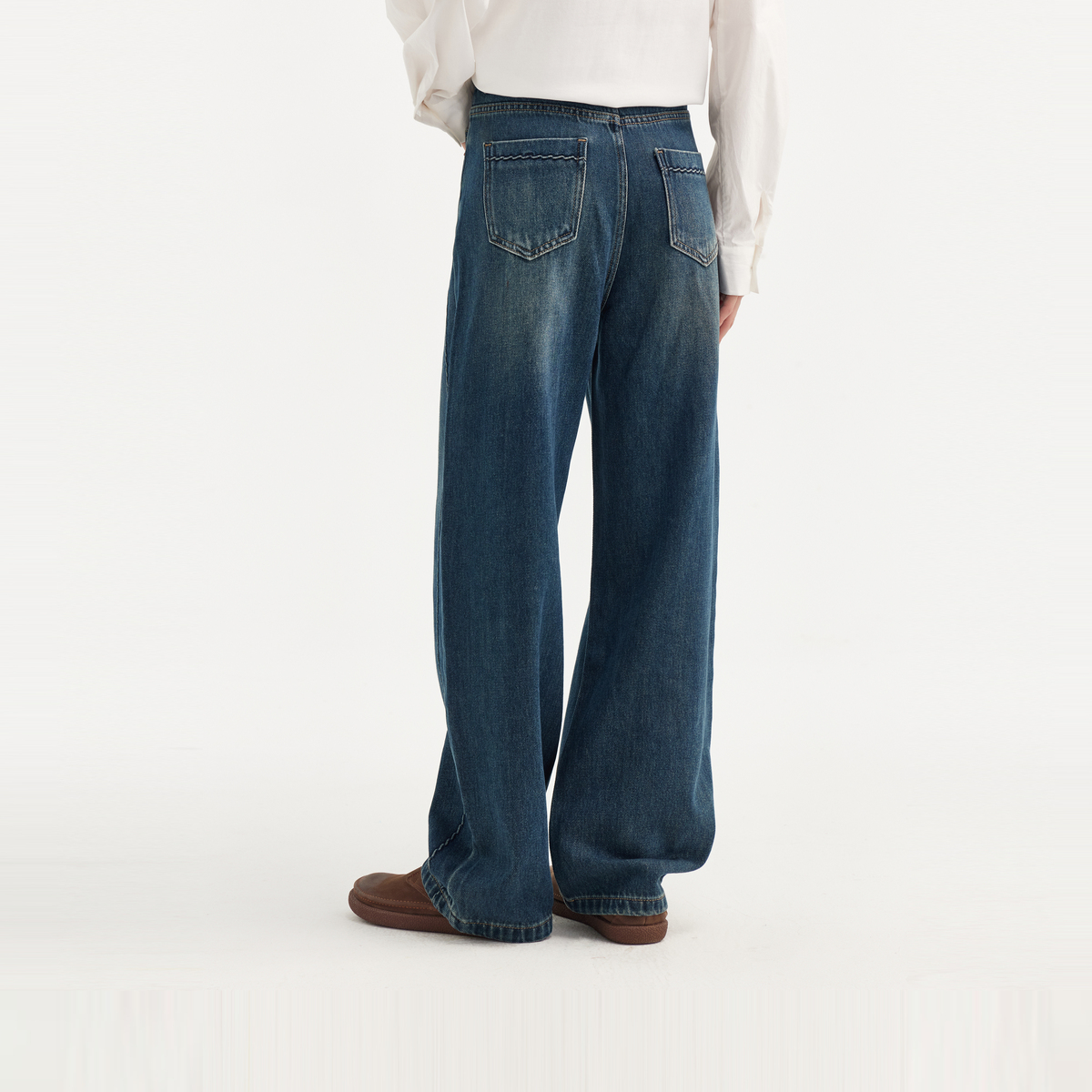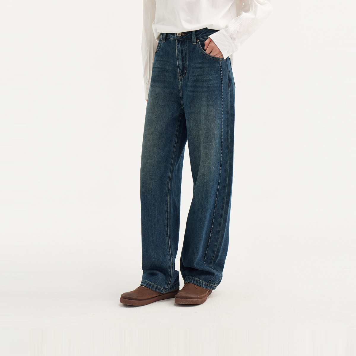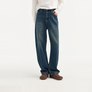 休闲宽松女裤 显瘦萝卜裤 新款 飞鸟和新酒复古高腰牛仔女磨白女装