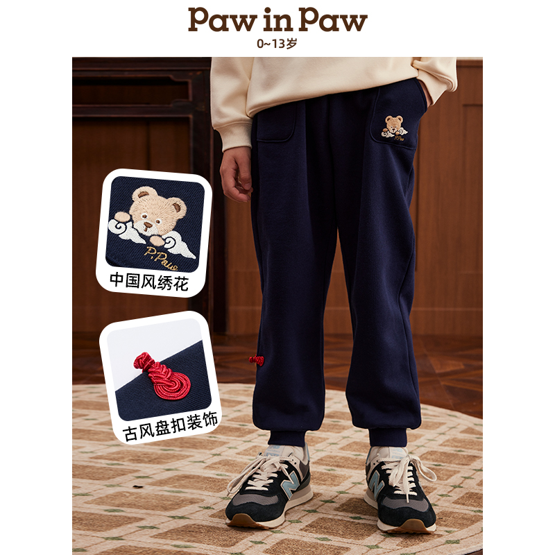 25年春新款 暖燚绒PawinPaw卡通小熊童装 男童加绒长裤 新年系列