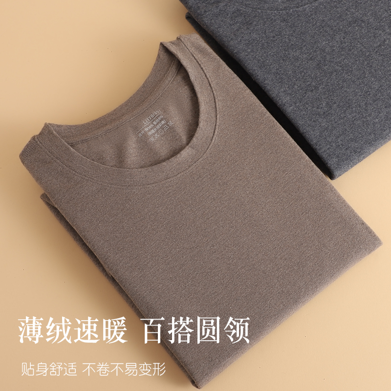 圆领打底全棉毛衫 纯棉秋衣秋裤 冬季 男士 薄绒磨毛贴身保暖内衣 套装