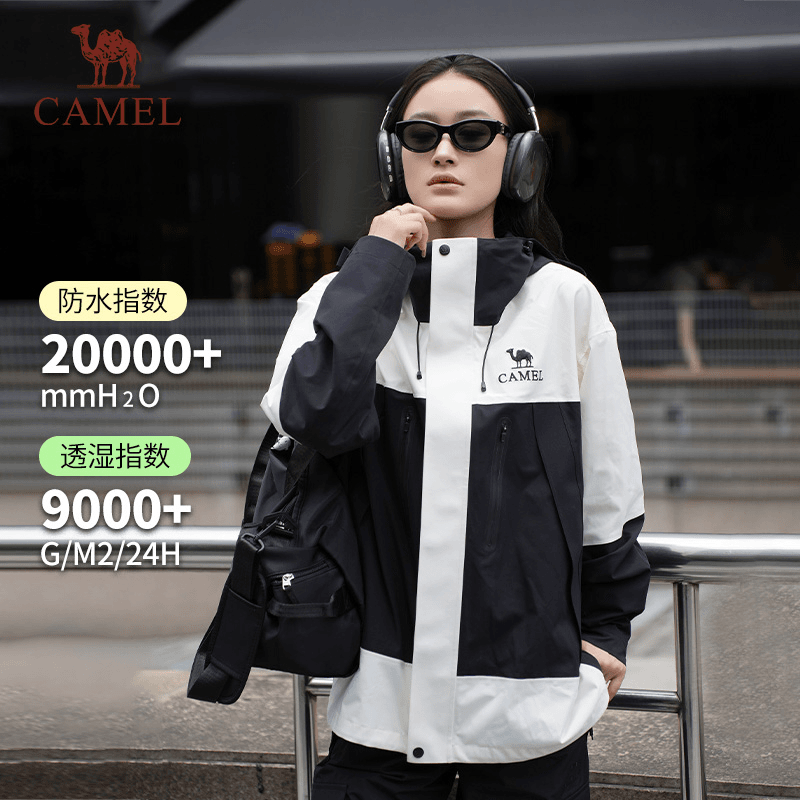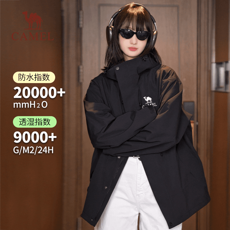 夹克女户外防风防水登山服 外套小个子新款 骆驼女装 三防冲锋衣短款