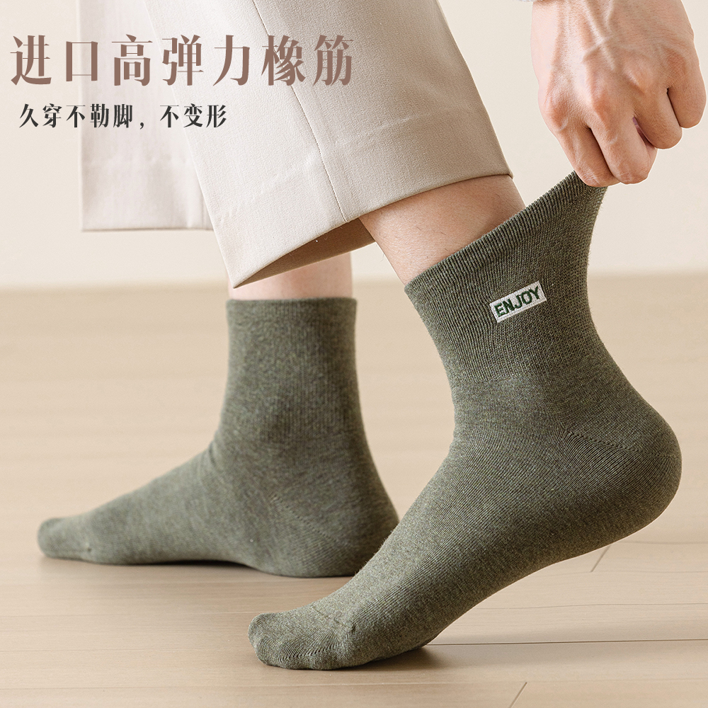 袜子男中短袜100%纯棉吸汗防臭低帮短筒刺绣无骨春秋款 中筒袜 男士