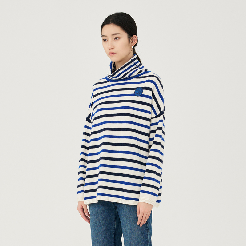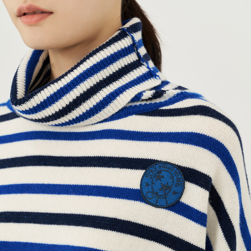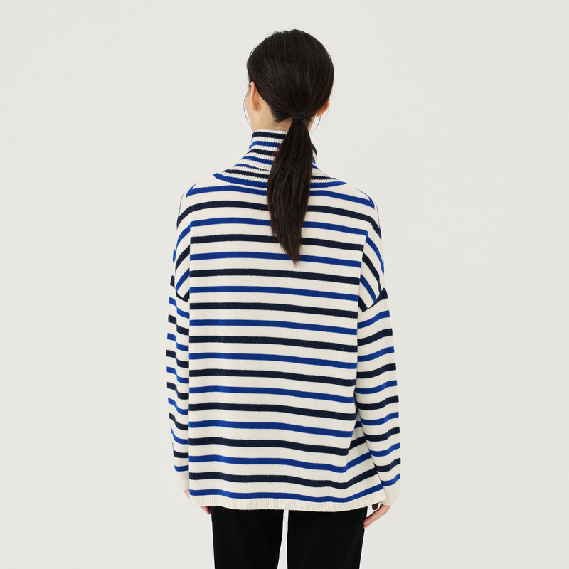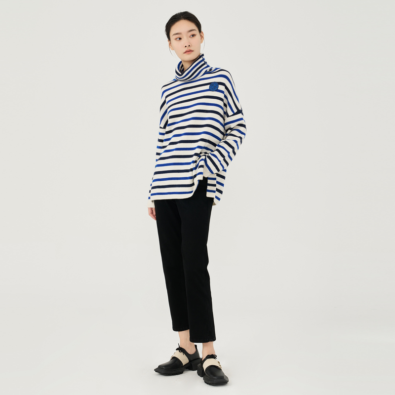 内搭毛衫 女绵羊毛中长款 高领条纹撞色套头毛针织衫 OTT秋冬新款