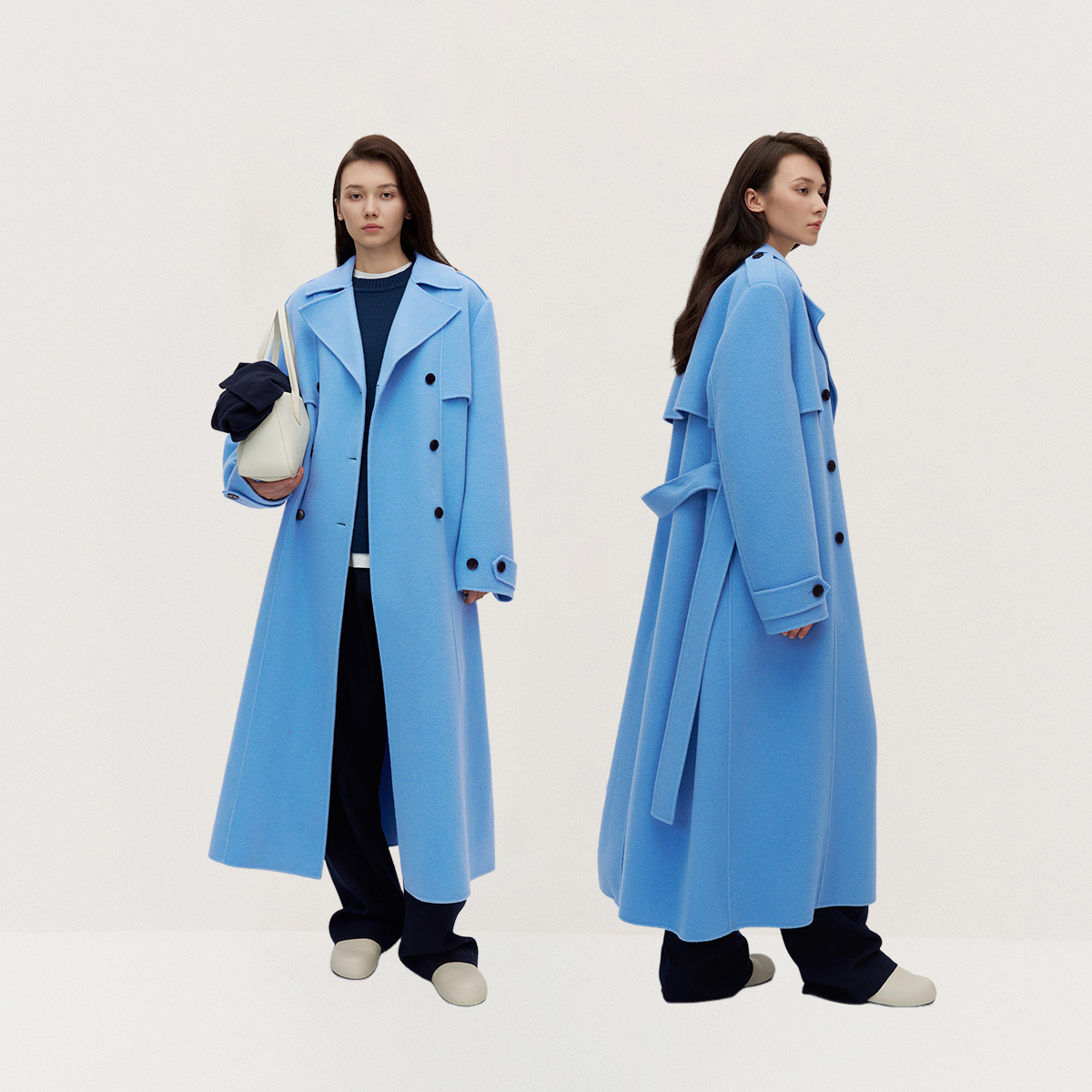新款 2025冬季 秋水伊人优雅翻领毛呢外套 通勤大衣 100%绵羊毛