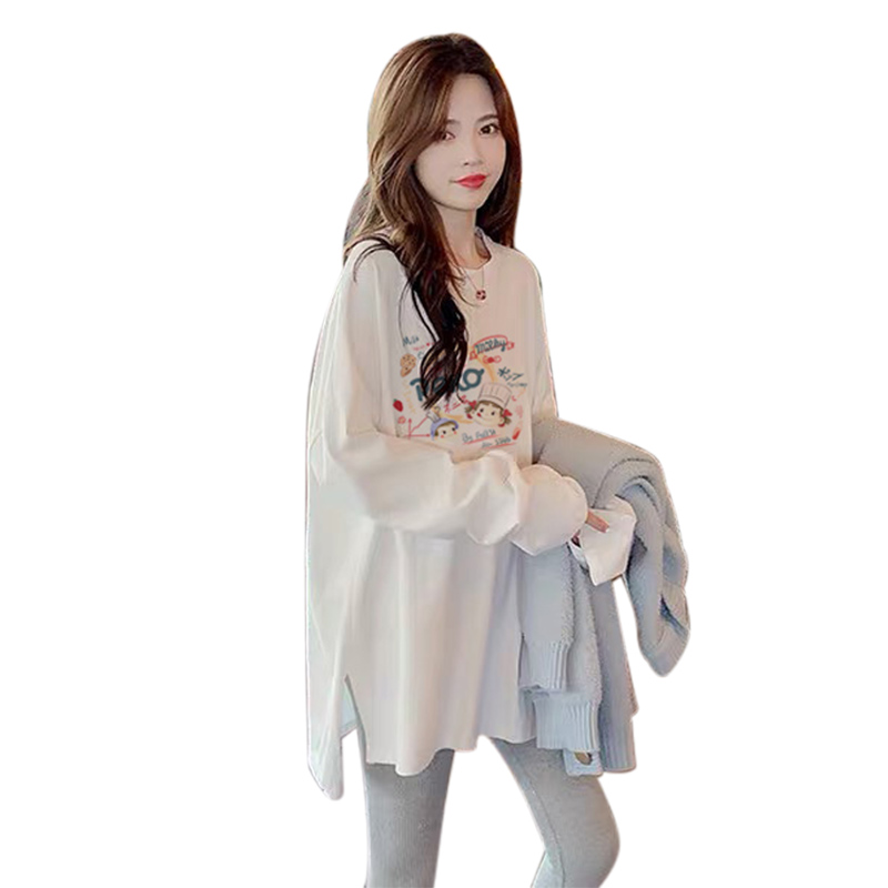 纯棉长袖 冬撞色上衣 T恤少女春秋初中高中学生外穿内搭宽松打底衫