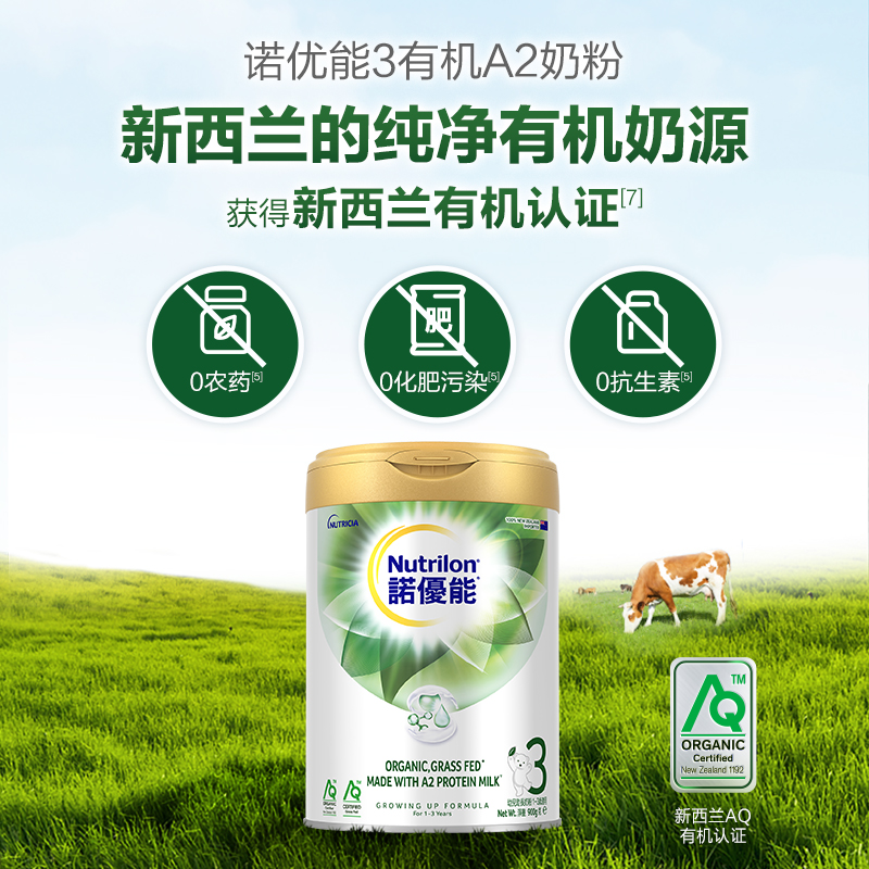 新西兰原装 3岁900g婴幼儿奶粉3段2罐 进口诺优能有机A2三段1