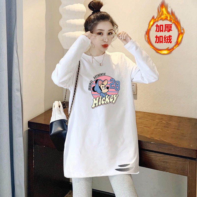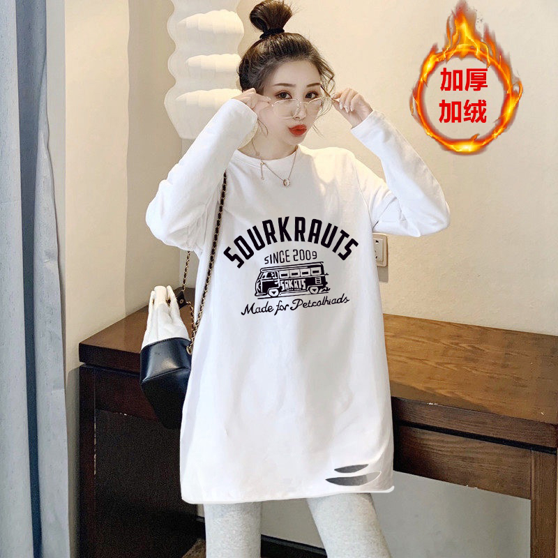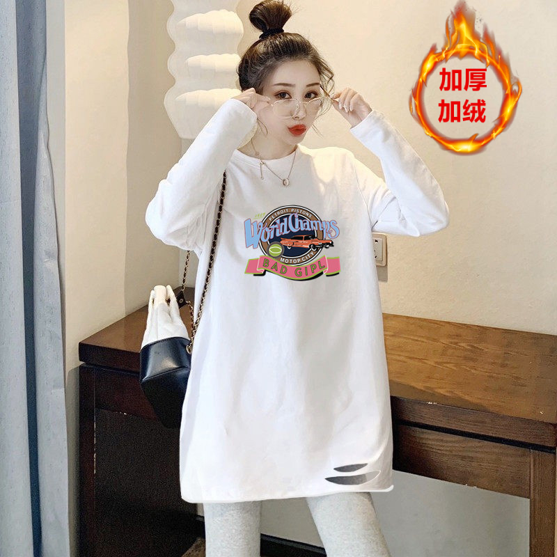 女ins 卫衣叠穿神器加绒加厚打底衫 秋冬内搭中长款 磨毛破洞T恤长袖